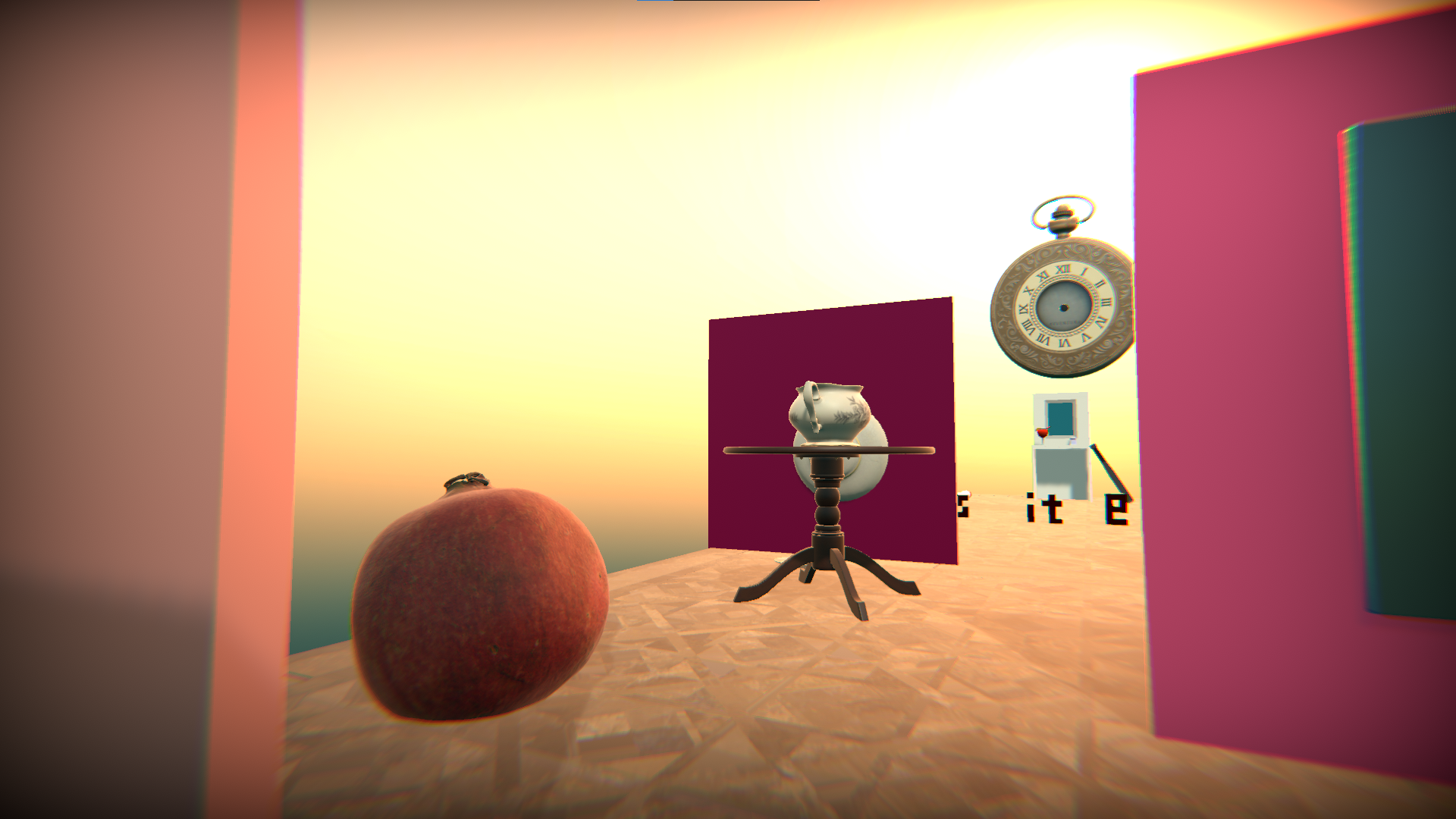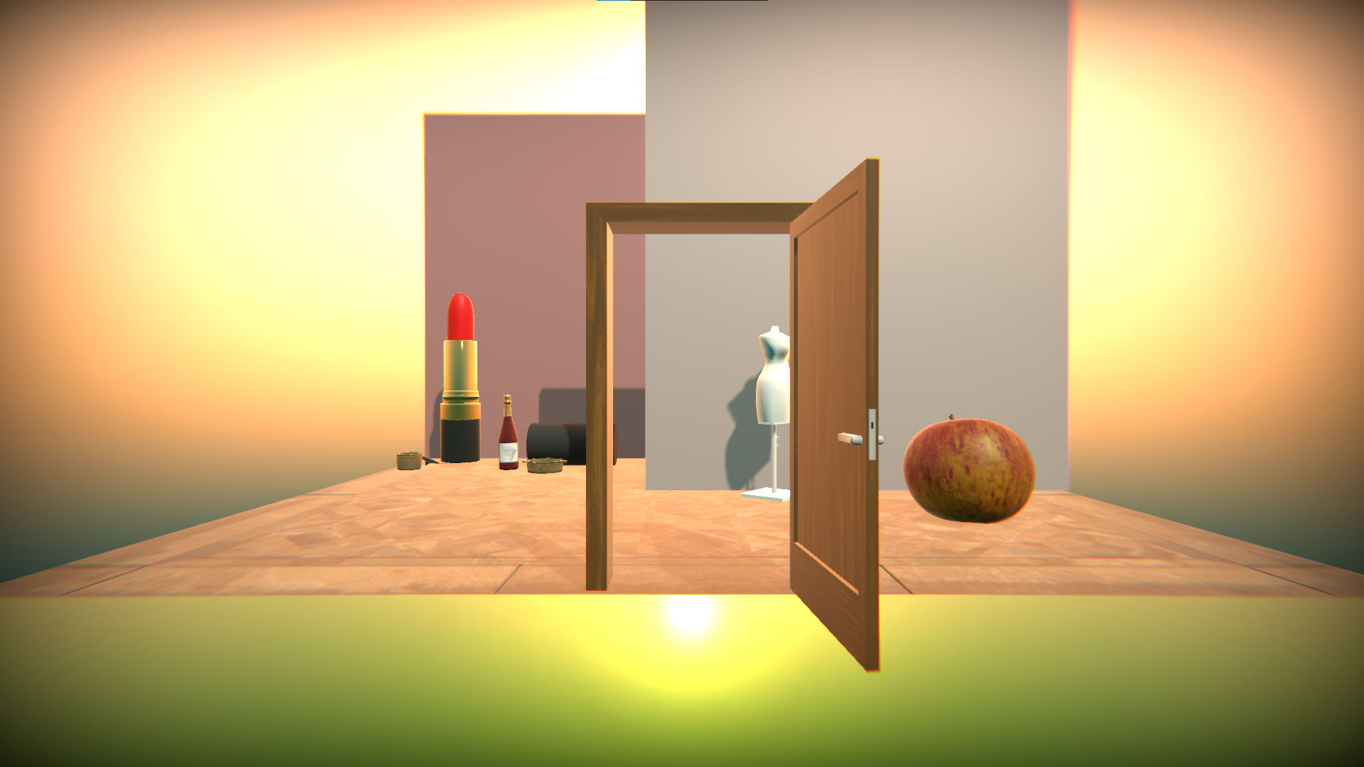 Before this class, I had never worked with a digital 3D medium, all the art I made had been contained by the view I drew it from, so this was a very new experience and produced many challenges that I did not expect and had to overcome. Due to my lack of knowledge in this area I decided to explore a topic I had previously explored, Femininity, from its mainstream image to how it relates to me. Last year, I began identifying as a girl, after about 3 years of feeling like I didn't fit a traditional femininity. I had a new found connection with femininity that deviated from the mainstream view of femininity. What femininity meant to me was a much deeper and darker image than what I had previously believed, my version of femininity had been tainted by performance femininity and caused pain. When femininity was a docile and meek trait that represented womanhood, I felt a connection, but when it represented deeper strength and pain I could relate to it, and I could feel like a woman again. In my world I tried to show my journey with the idea of femininity, starting with a mainstream view that included pinks, fruits, wine and normalcy, the superficial traits I felt little connection to. However, as you travel through the world, you soon see a femininity that is the reaction to its mainstream view, with pills, syringes, cigarettes and a phone. All of the performative mainstream femininity has birthed an ugly, broken picture of femininity that connects more with pain than it does with gender. That is not to say that those who identify with a more traditional femininity are wrong, it is just not a true version of femininity to me. Overall, the world is supposed to represent preformative femininity becoming distorted and the feelings that lie under the surface.